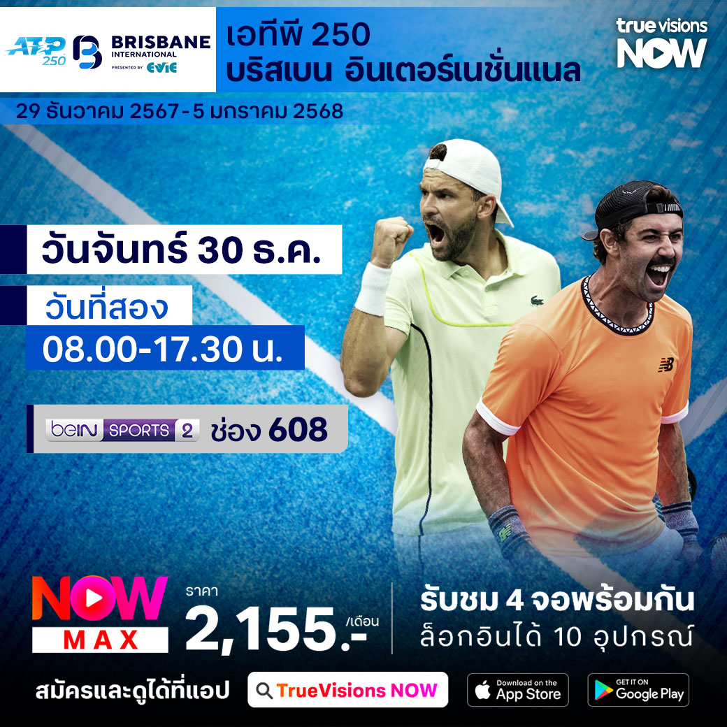 เทนนิส เอทีพี ทัวร์ รายการแรกของปี 2025 บริสเบน อินเตอร์เนชั่นแนล ที่เมืองบริสเบน ประเทศออสเตรเลีย เป็นเทนนิสรายการสำคัญเพื่อให้นักกีฬาได้เตรียมตัวก่อนเข้าสู่แกรนด์สแลมแรกของปี ออสเตรเลียน โอเพ่น ร่วมลุ้นกันว่าใครจะคว้าแชมป์รายการนี้ไปครองได้สำเร็จ ชมสด ครบทุกรอบ ที่ ทรูวิชั่นส์