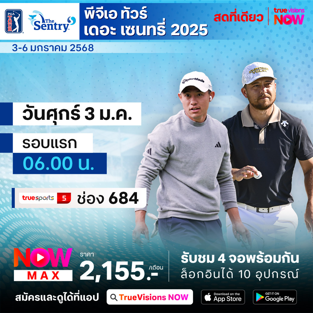 กอล์ฟ พีจีเอ ทัวร์ ได้ฤกษ์เปิดฤดูกาลใหม่ 2025 อย่างเป็นทางการกับ ทัวร์นาเมนต์ ออฟ แชมเปี้ยนส์ รายการ เดอะ เซนทรี่ ที่นักกอล์ฟ ดีกรีแชมป์พีจีเอ ทัวร์ ฤดูกาลล่าสุด ตบเท้าเข้าร่วมแข่งขันกันคับคั่ง และลุ้นตำแหน่งแชมป์เป็นการประเดิม ที่สนาม แพลนเทชั่น คอร์ส ใน คาปาลัว รัฐฮาวาย กับเงินรางวัลรวมมหาศาล 20 ล้านเหรียญสหรัฐฯ ร่วมลุ้นกันว่าใครจะคว้าโทรฟี่แชมป์ พร้อมกับครอบครองเงิน 4 ล้านเหรียญฯ ชมสด เอ็กซ์คลูซีฟ ที่เดียวที่ ทรูวิชั่นส์