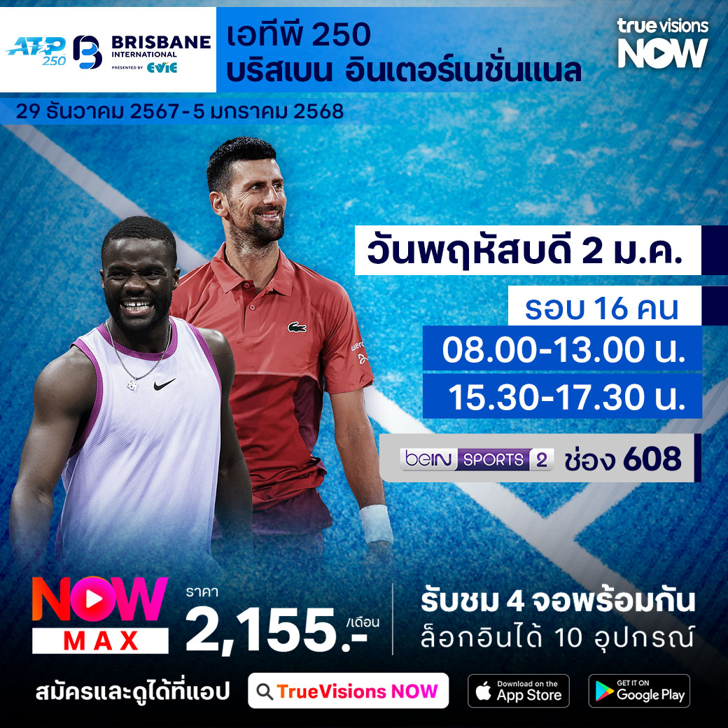 เทนนิส เอทีพี ทัวร์ รายการแรกของปี 2025 บริสเบน อินเตอร์เนชั่นแนล ที่เมืองบริสเบน ประเทศออสเตรเลีย เป็นเทนนิสรายการสำคัญเพื่อให้นักกีฬาได้เตรียมตัวก่อนเข้าสู่แกรนด์สแลมแรกของปี ออสเตรเลียน โอเพ่น ร่วมลุ้นกันว่าใครจะคว้าแชมป์รายการนี้ไปครองได้สำเร็จ ชมสด ครบทุกรอบ ที่ ทรูวิชั่นส์