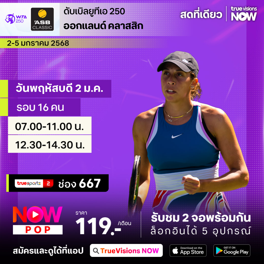 เปิดฤดูกาลเทนนิสหญิงปี 2025 กับรายการใหญ่ระดับ WTA 500 จากออสเตรเลีย เพื่อเตรียมตัวเข้าสู่แกรนด์แสลมแรกของปีอย่าง ออสเตรเลียน โอเพ่น กับรายการบริสเบน อินเตอร์แนชั่นแนล ร่วมลุ้นกันว่านักเทนนิสหญิงคนไหนจะคว้าแชมป์แรกของปีไปครอง ชมสด ครบทุกรอบ ที่ ทรูวิชั่นส์