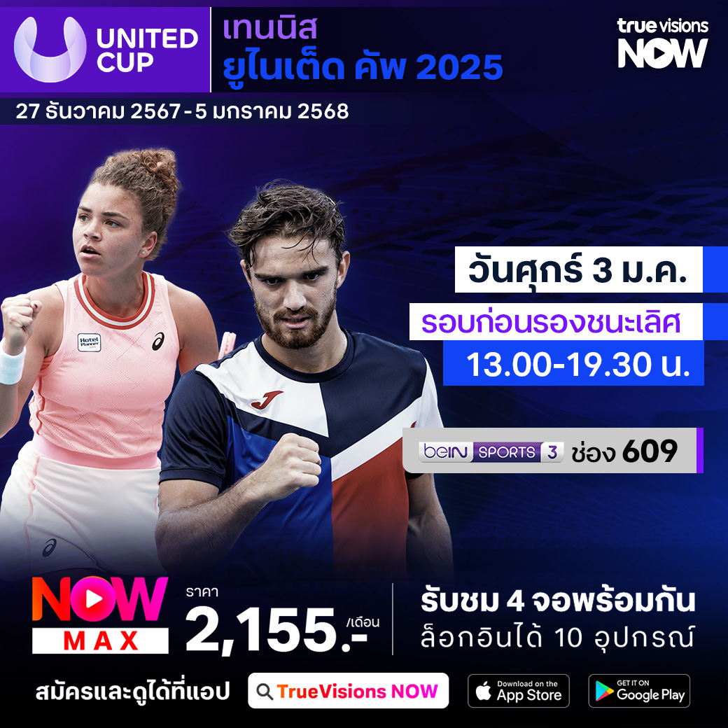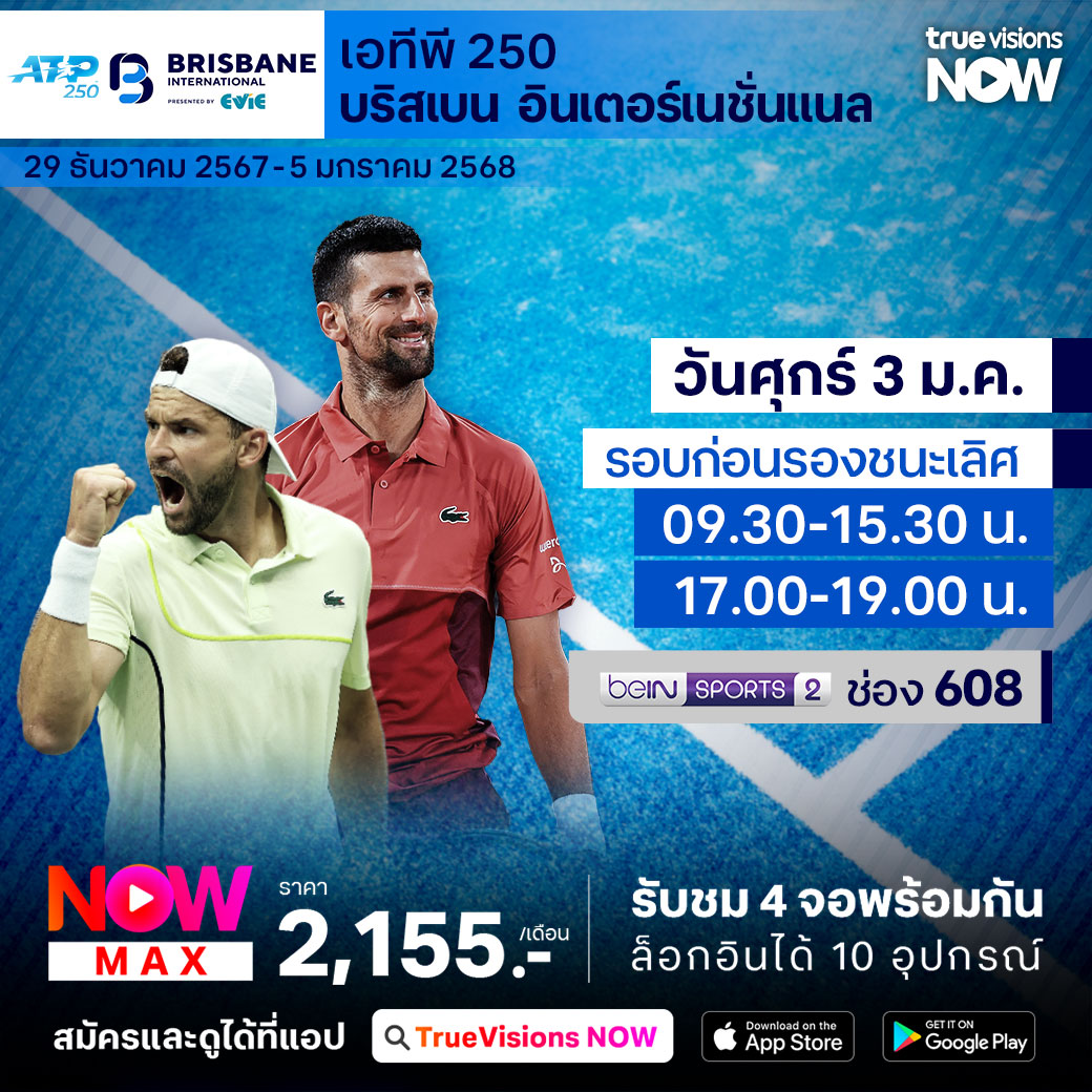 เทนนิส เอทีพี ทัวร์ รายการแรกของปี 2025 บริสเบน อินเตอร์เนชั่นแนล ที่เมืองบริสเบน ประเทศออสเตรเลีย เป็นเทนนิสรายการสำคัญเพื่อให้นักกีฬาได้เตรียมตัวก่อนเข้าสู่แกรนด์สแลมแรกของปี ออสเตรเลียน โอเพ่น ร่วมลุ้นกันว่าใครจะคว้าแชมป์รายการนี้ไปครองได้สำเร็จ ชมสด ครบทุกรอบ ที่ ทรูวิชั่นส์