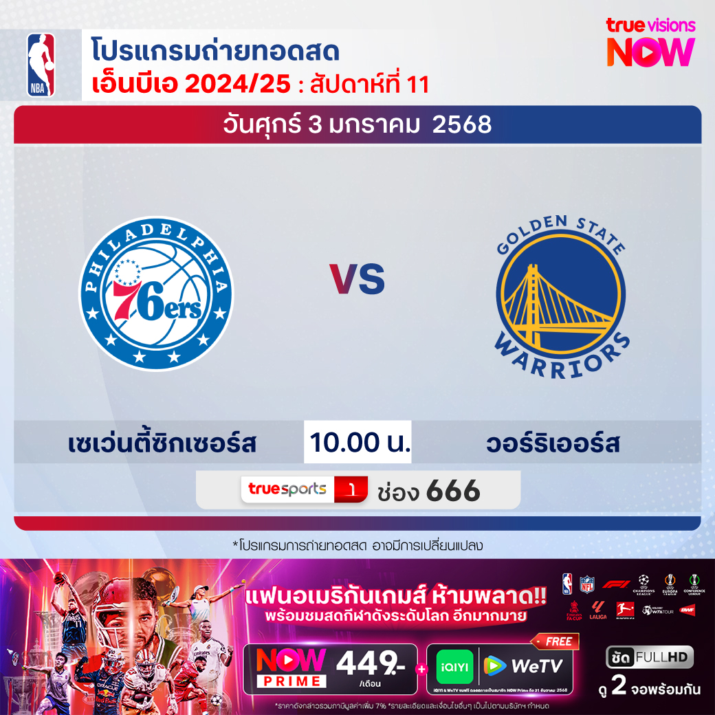 76ers Vs Warriors เวลา 10.00 ทางช่อง TS 1 (666)