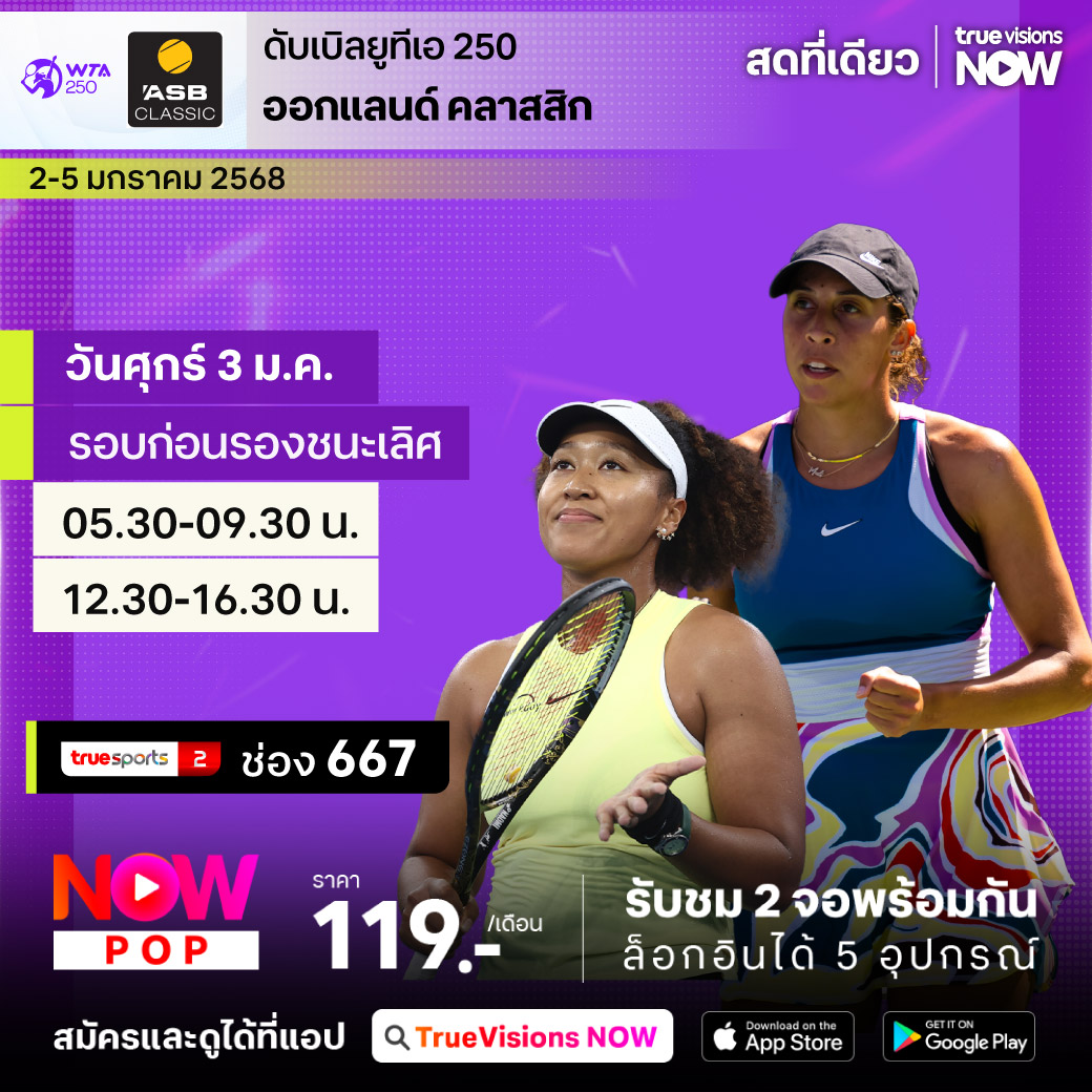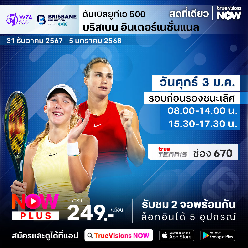 เปิดฤดูกาลเทนนิสหญิงปี 2025 กับรายการใหญ่ระดับ WTA 500 จากออสเตรเลีย เพื่อเตรียมตัวเข้าสู่แกรนด์แสลมแรกของปีอย่าง ออสเตรเลียน โอเพ่น กับรายการบริสเบน อินเตอร์แนชั่นแนล ร่วมลุ้นกันว่านักเทนนิสหญิงคนไหนจะคว้าแชมป์แรกของปีไปครอง ชมสด ครบทุกรอบ ที่ ทรูวิชั่นส์