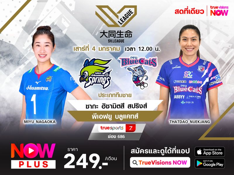 พรีวิว วอลเลย์บอลหญิง เอสวี ลีก 2024/2025 (สัปดาห์ที่ 11) คู่ระหว่าง : ซากะ ฮิซามิตสึ สปริงส์ พบ พีเอฟยู บลูแคทส์ วันเสาร์ ที่ 4 ม.ค. 68 เวลา 12.00 น. สนาม : แฮปปิเนส อารีน่า ถ่ายทอดสด : ทรูสปอร์ต 7 ช่อง 686
