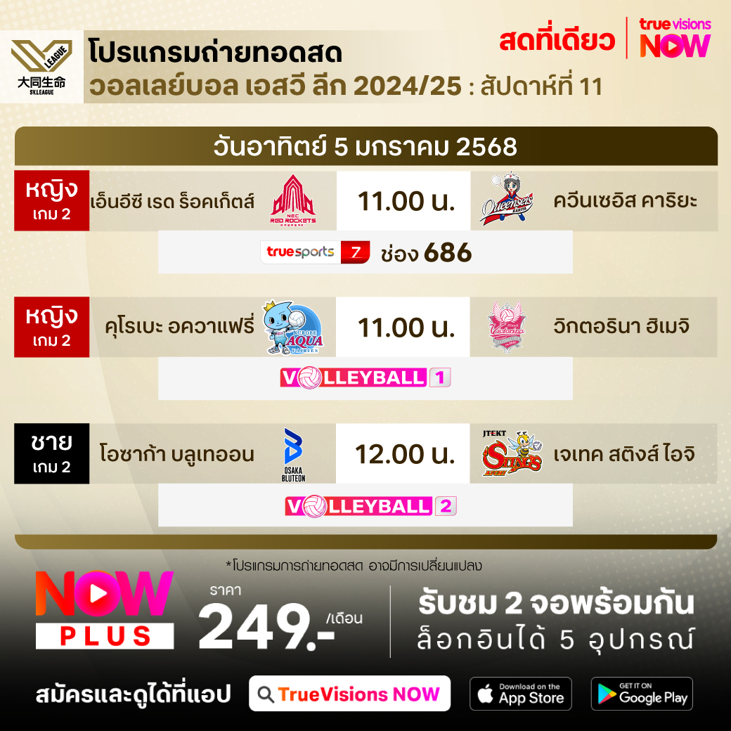 เอ็นอีซี เรด ร็อคเก็ตส์ พบ ควีนเซอิส คาริยะ เวลา 11.00 - 13.30 ทางช่อง TS 7 (686)