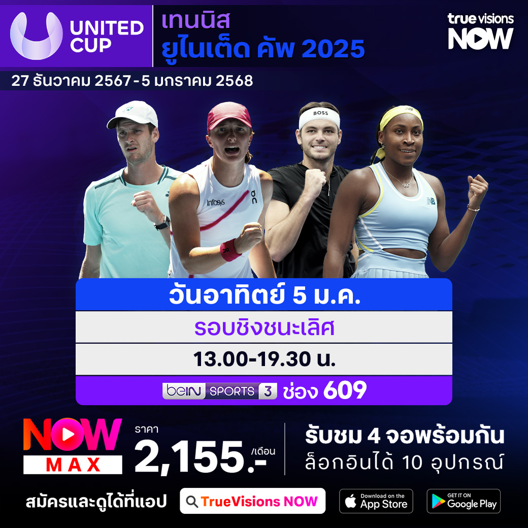 รอบชิงชนะเลิศ เวลา 13.30-15.30 ทางช่อง True Tennis (670)