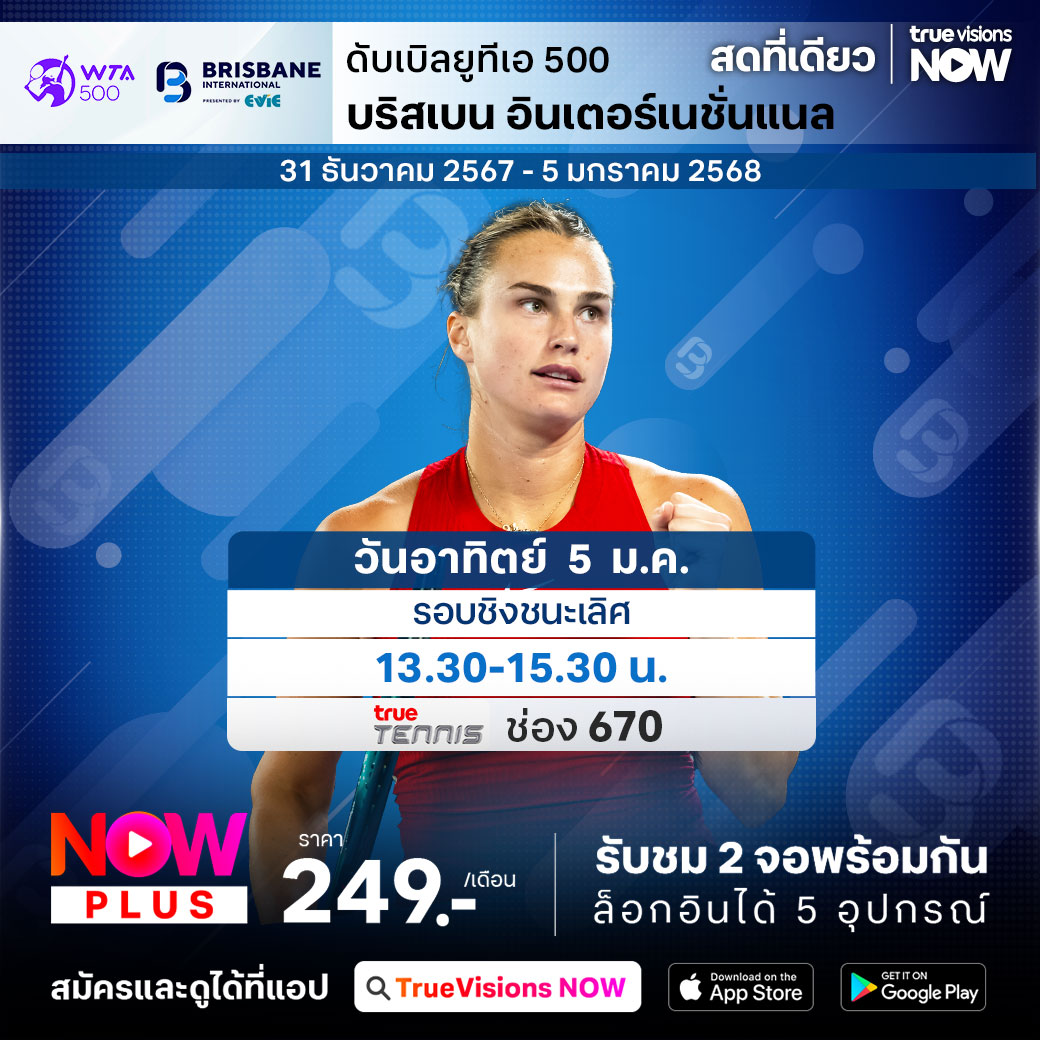 เปิดฤดูกาลเทนนิสหญิงปี 2025 กับรายการใหญ่ระดับ WTA 500 จากออสเตรเลีย เพื่อเตรียมตัวเข้าสู่แกรนด์แสลมแรกของปีอย่าง ออสเตรเลียน โอเพ่น กับรายการบริสเบน อินเตอร์แนชั่นแนล ร่วมลุ้นกันว่านักเทนนิสหญิงคนไหนจะคว้าแชมป์แรกของปีไปครอง ชมสด ครบทุกรอบ ที่ ทรูวิชั่นส์