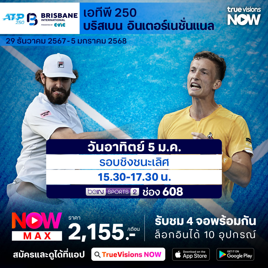 เทนนิส เอทีพี ทัวร์ รายการแรกของปี 2025 บริสเบน อินเตอร์เนชั่นแนล ที่เมืองบริสเบน ประเทศออสเตรเลีย เป็นเทนนิสรายการสำคัญเพื่อให้นักกีฬาได้เตรียมตัวก่อนเข้าสู่แกรนด์สแลมแรกของปี ออสเตรเลียน โอเพ่น ร่วมลุ้นกันว่าใครจะคว้าแชมป์รายการนี้ไปครองได้สำเร็จ ชมสด ครบทุกรอบ ที่ ทรูวิชั่นส์