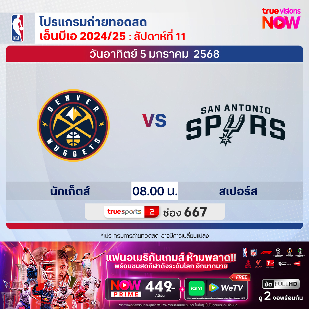 Nuggets Vs Spurs เวลา 08.00 ทางช่อง TS 2 (667)