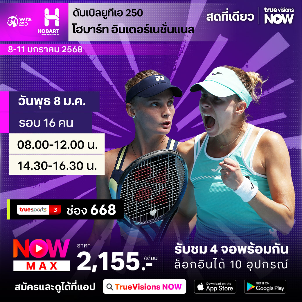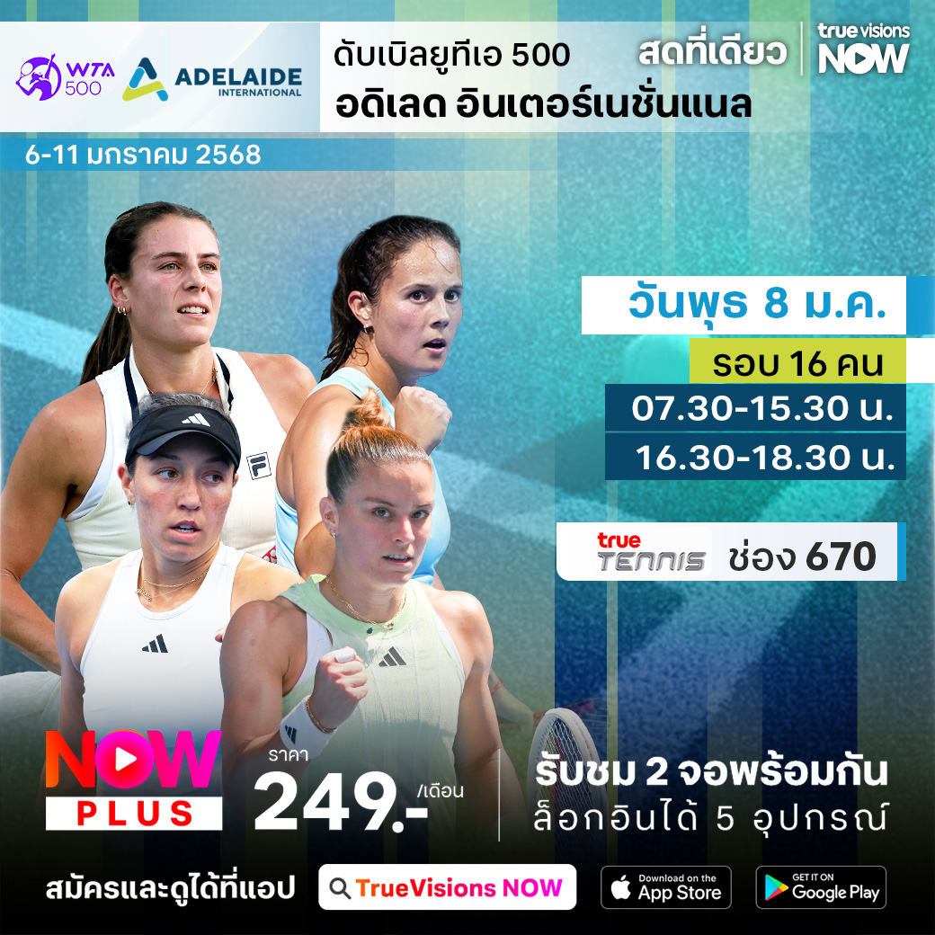 เทนนิสหญิง ดับเบิ้ลยูทีเอ ทัวร์ สัปดาห์นี้ยังอยู่กันที่ออสเตรเลีย กับรายการแอดิเลด อินเตอร์แนชั่นแนล รายการระดับ WTA 500 รายการสำคัญ ก่อนเข้าสู่การแข่งขันแกรนด์สแลมแรกของปี ออสเตรเลียน โอเพ่น ร่วมลุ้นกันว่าใครจะคว้าแชมป์ไปครอง ชมสด ครบทุกรอบที่ ทรูวิชั่นส์