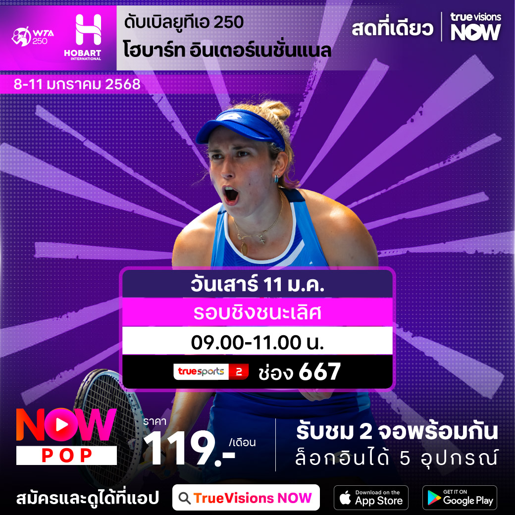 รอบชิงชนะเลิศ เวลา 12.30-14.30 ทางช่อง True Tennis (670)