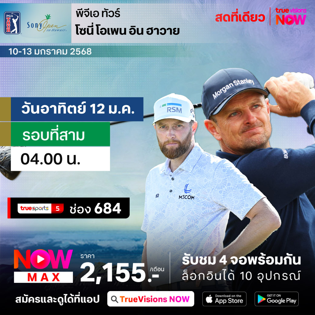 ชมกันต่อเนื่องกับกอล์ฟ พีจีเอ ทัวร์ ฤดูกาลใหม่ 2025 สัปดาห์นี้ยังปักหลักในบรรยากาศสุดชิลที่ฮาวาย กับรายการ โซนี่ โอเพ่น อิน ฮาวาย ที่บรรดาโปรแถวหน้าของทัวร์ตบเท้ามาร่วมแข่งขันกันคับคั่ง ที่สนาม ไวอาเล คันทรี่ คลับ ในโฮโนลูลู ชิงเงินรางวัลรวม 8,700,000 เหรียญสหรัฐฯ ร่วมลุ้นกันว่าใครจะคว้าแชมป์รายการนี้ ชมสด เอ็กซ์คลูซีฟ ครบทุกรอบ ที่เดียวที่ ทรูวิชั่นส์