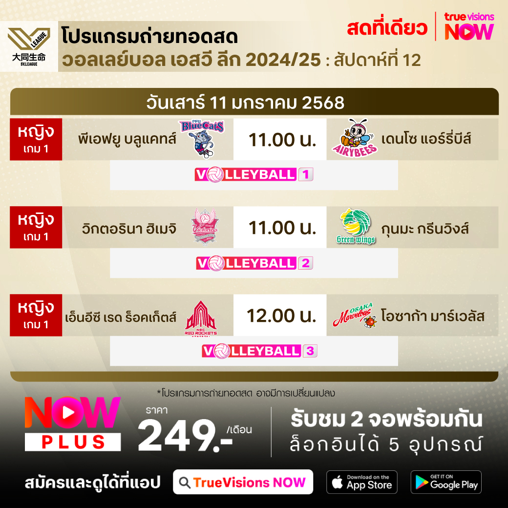 เอ็นอีซี เรด ร็อคเก็ตส์ พบ โอซาก้า มาร์เวลัส เวลา 12.00 - 14.30 ทางช่อง Volleyball 3