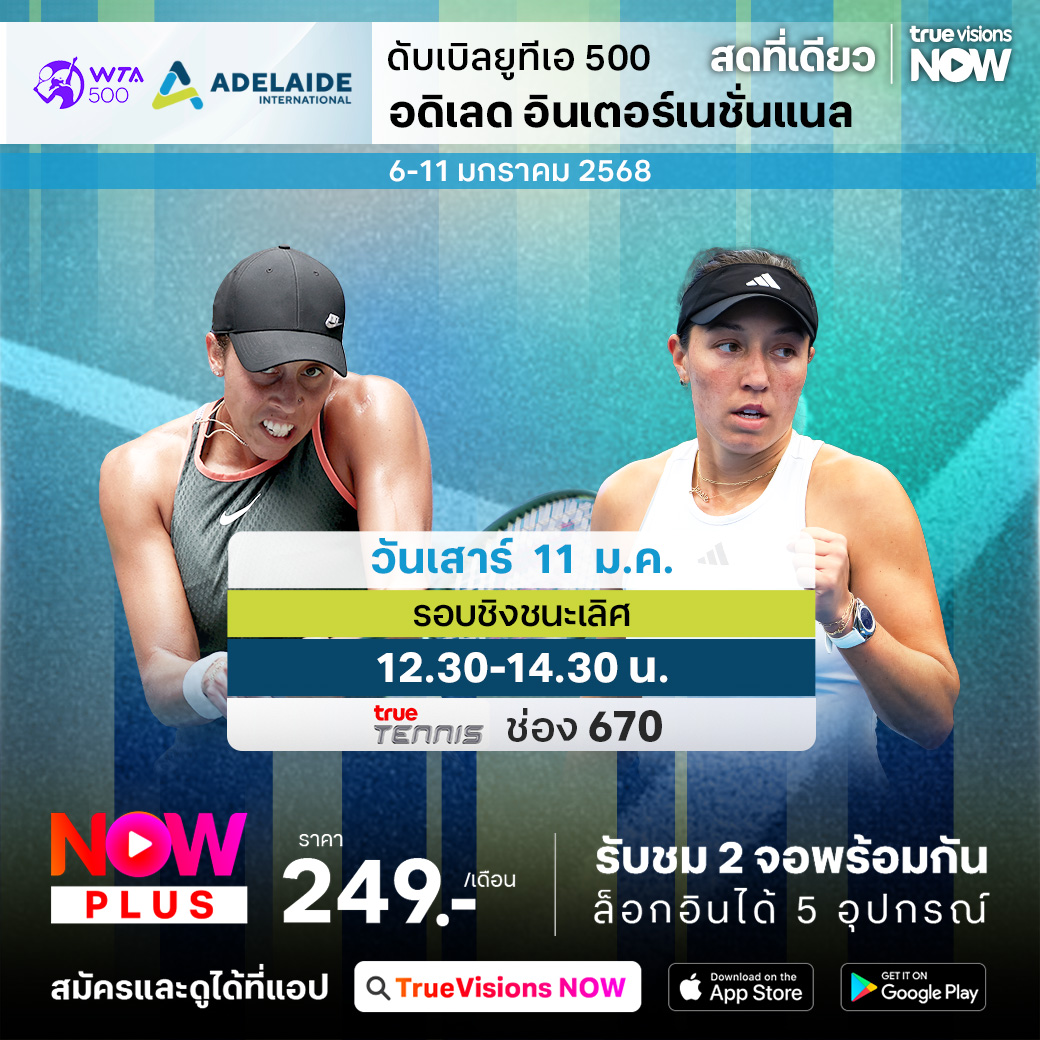 เทนนิสหญิง ดับเบิ้ลยูทีเอ ทัวร์ สัปดาห์นี้ยังอยู่กันที่ออสเตรเลีย กับรายการแอดิเลด อินเตอร์แนชั่นแนล รายการระดับ WTA 500 รายการสำคัญ ก่อนเข้าสู่การแข่งขันแกรนด์สแลมแรกของปี ออสเตรเลียน โอเพ่น ร่วมลุ้นกันว่าใครจะคว้าแชมป์ไปครอง ชมสด ครบทุกรอบที่ ทรูวิชั่นส์