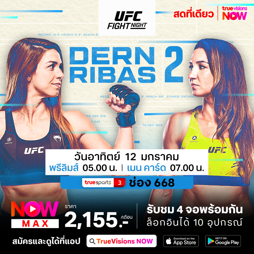 ประเดิมความเดือดไฟต์แรกของปี 2025 กับ ยูเอฟซี ไฟต์ ไนท์ ต้อนรับแฟนๆ ที่รักกีฬาต่อสู้ในรูปแบบเอ็มเอ็มเอ คู่เอก เป็นการโคจรมาทำศึกแห่งศักดิ์ศรีนักสู้สาวบราซิเลี่ยน รุ่นสตรอว์เวต ระหว่าง แม็คเคนซี่ เดิร์น รองแชมป์อันดับ 6 กับ อาแมนด้า ฮิบาส รองแชมป์อันดับ 10 ร่วมด้วยรุ่นเวลเตอร์เวตชาย ซานติอาโก้ พอนซินิบบิโอ เสือร้ายจากอาร์เจนติน่า ปะทะ ชาร์ลส์ตัน แฮร์ริส ชมสด เอ็กซ์คลูซีฟ ตั้งแต่รอบพรีลิมส์ ถึง เมนคาร์ด ที่เดียวที่ ทรูวิชั่นส์