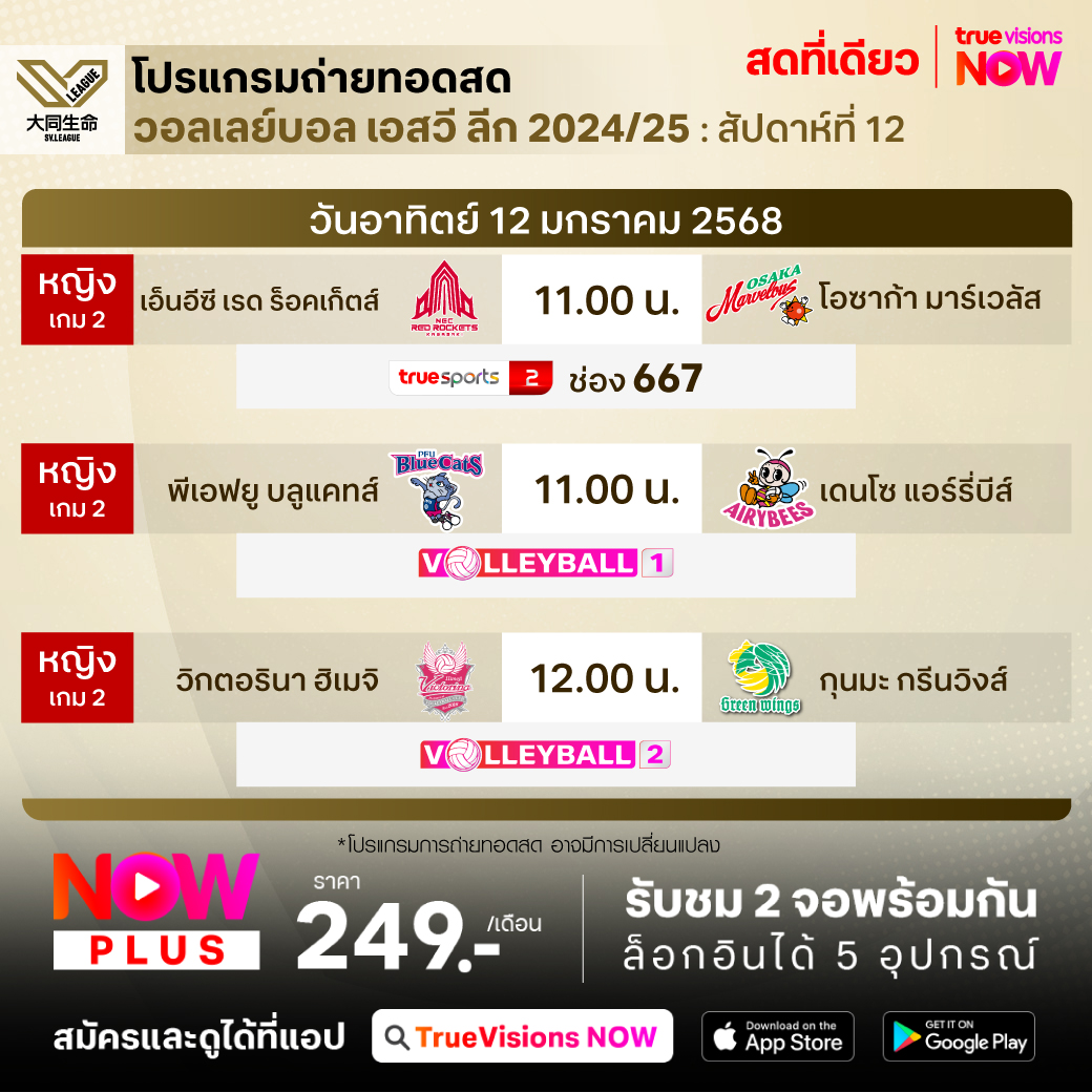 เอ็นอีซี เรด ร็อคเก็ตส์ พบ โอซาก้า มาร์เวลัส เวลา 11.00 - 13.30 ทางช่อง TS 2 (667)