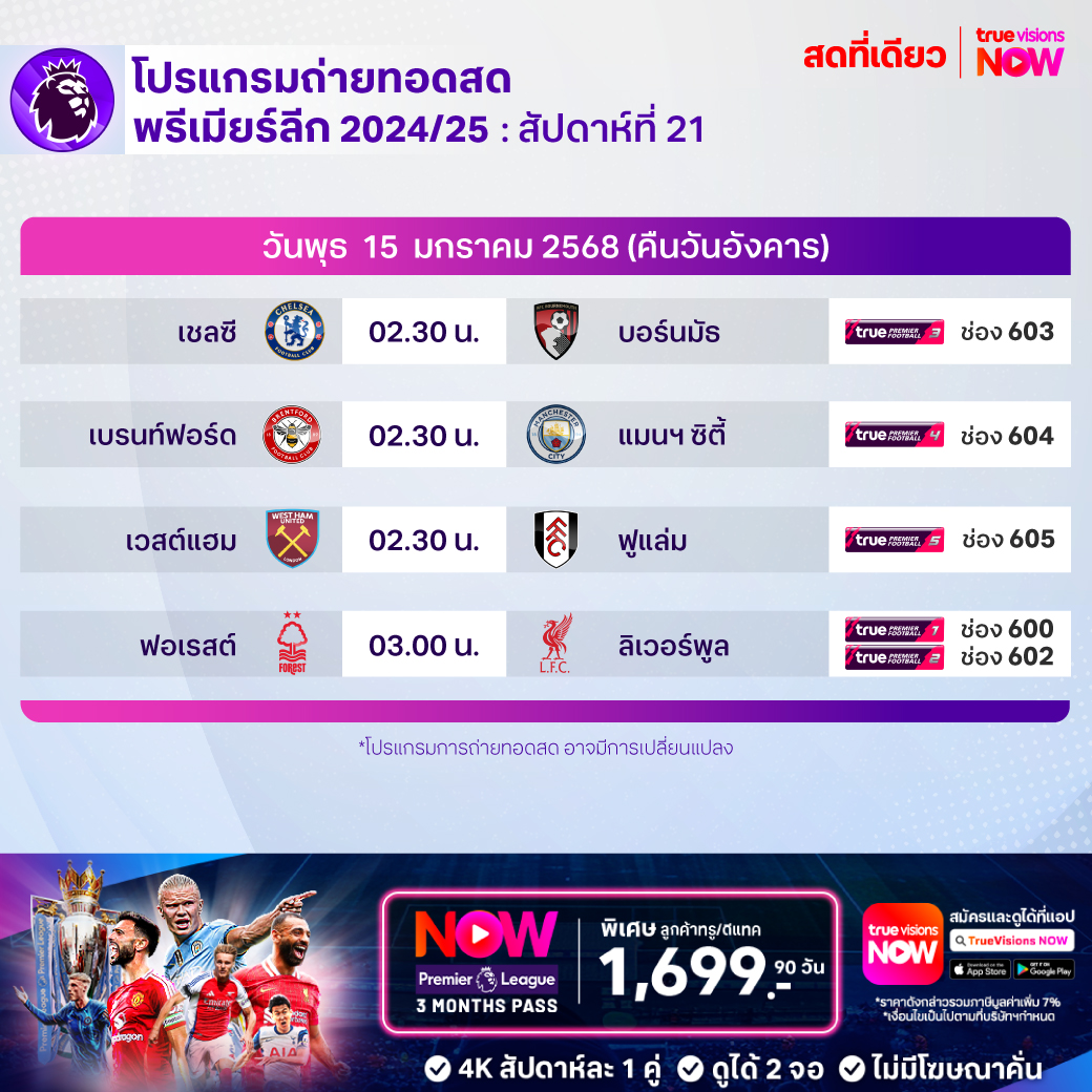 Brentford vs Man City เวลา 02:30 - 04:30 ทางช่องTPF 4(604)