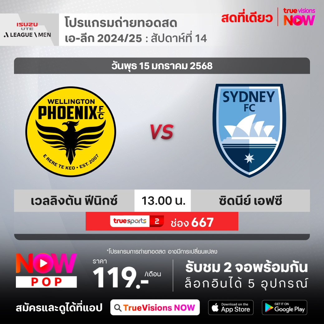 Wellington Phoenix vs Sydney FC เวลา 13.00-15.00 ทางช่อง TS 2 (667)