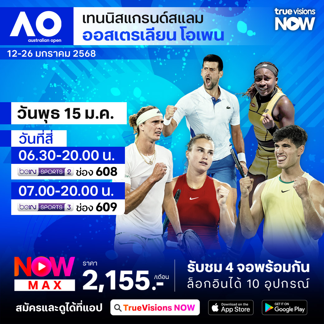 ศึกเทนนิสออสเตรเลียน โอเพ่น แกรนด์สแลมแรกของปี 2025 กลับมาอีกครั้งกับรายการแกรนด์สแลมสุดโหด ที่ผู้เล่นต้องเผชิญกับสภาพอากาศร้อนจัด ในเมืองเมลเบิร์น ประเทศออสเตรเลีย ร่วมลุ้นว่านักเทนนิสชายและหญิงคนไหน จะคว้าแชมป์แกรนด์สแลมแรกของปีไปครอง ชมสด ครบทุกรอบ ที่ ทรูวิชั่นส์