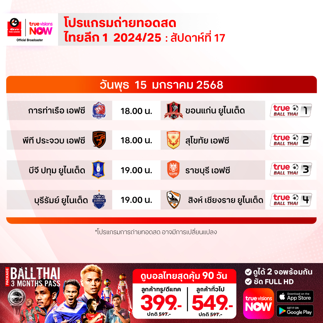 การท่าเรือ เอฟซี พบ ขอนแก่น ยูไนเต็ด เวลา 18.00-20.00 ทางช่อง True Ball Thai 1