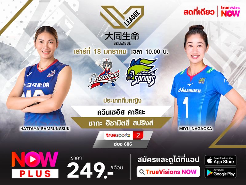พรีวิว วอลเลย์บอลหญิง เอสวี ลีก 2024/2025 (สัปดาห์ที่ 13) คู่ระหว่าง : ควีนเซอิส คาริยะ พบ ซากะ ฮิซามิตสึ สปริงส์ วันเสาร์ ที่ 18 ม.ค. 68 เวลา 10.00 น. สนาม : สกายฮอลล์ โตโยต้า ถ่ายทอดสด : ทรูสปอร์ต 7 ช่อง 686