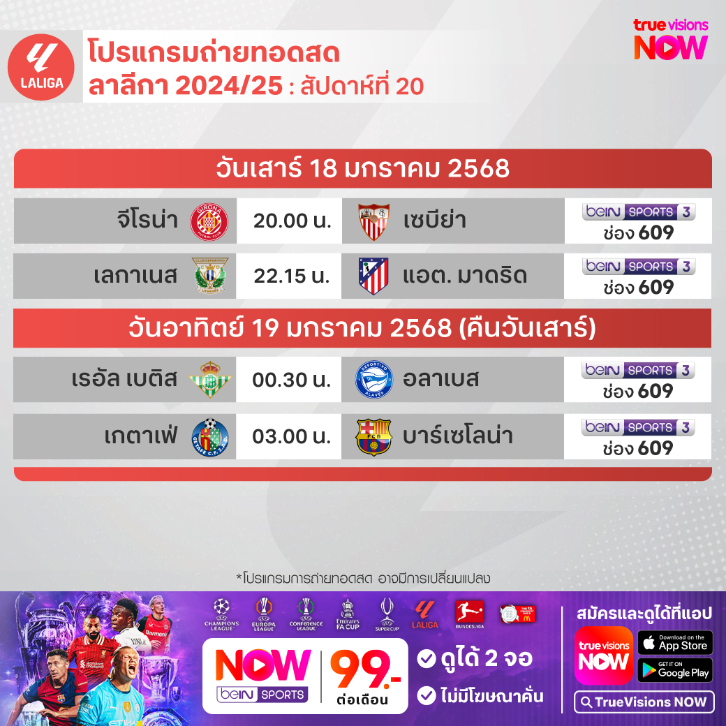 Girona vs Sevilla เวลา 20.00-22.00 ทางช่อง beIN 3 (609)