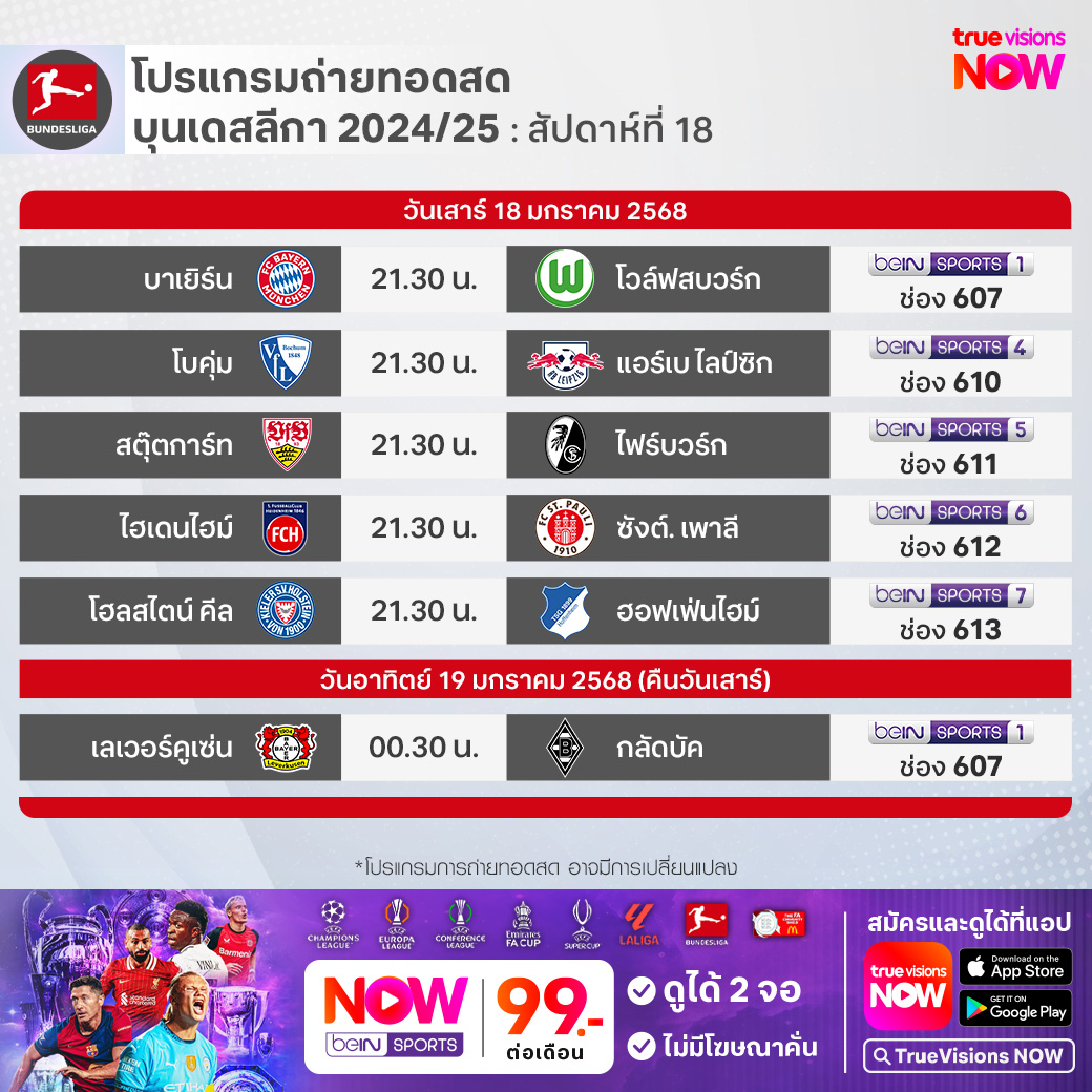 Leverkusen vs Monchengladbach เวลา 00.30-02.30 ทางช่อง beIN 1 (607)