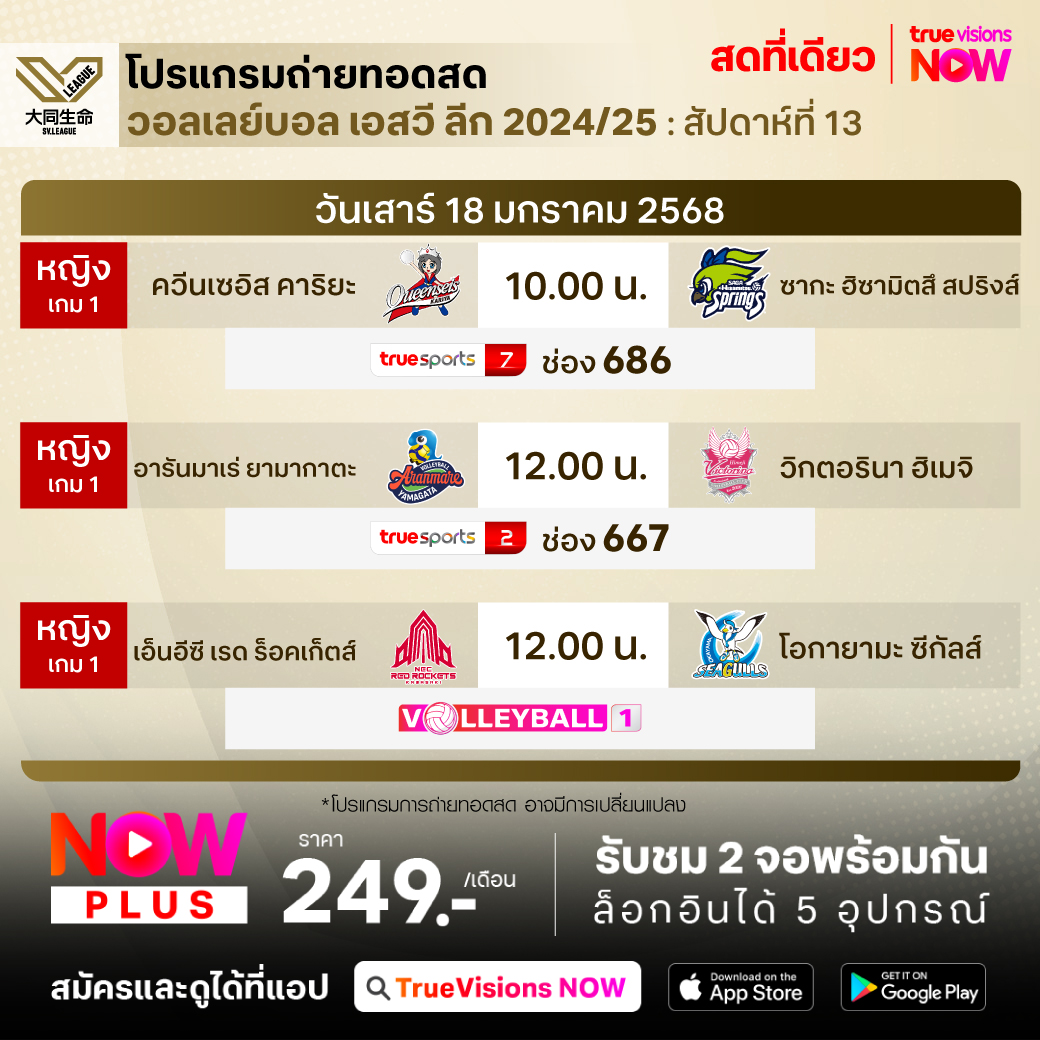 เอ็นอีซี เรด ร็อคเก็ตส์ พบ โอกายามะ ซีกัลส์ เวลา 12.00 - 14.30 ทางช่อง Volleyball 1