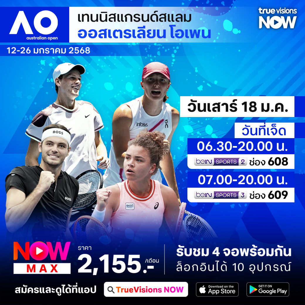 ศึกเทนนิสออสเตรเลียน โอเพ่น แกรนด์สแลมแรกของปี 2025 กลับมาอีกครั้งกับรายการแกรนด์สแลมสุดโหด ที่ผู้เล่นต้องเผชิญกับสภาพอากาศร้อนจัด ในเมืองเมลเบิร์น ประเทศออสเตรเลีย ร่วมลุ้นว่านักเทนนิสชายและหญิงคนไหน จะคว้าแชมป์แกรนด์สแลมแรกของปีไปครอง ชมสด ครบทุกรอบ ที่ ทรูวิชั่นส์