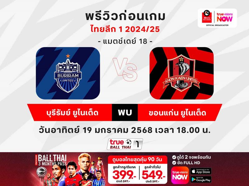 พรีวิวความพร้อมการแข่งขันฟุตบอลไทยลีก1 ประจำวันอาทิตย์ ที่ 19 มกราคม 2568 บุรีรัมย์ ยูไนเต็ด เปิดบ้านรับการมาเยือน ขอนแก่น ยูไนเต็ด