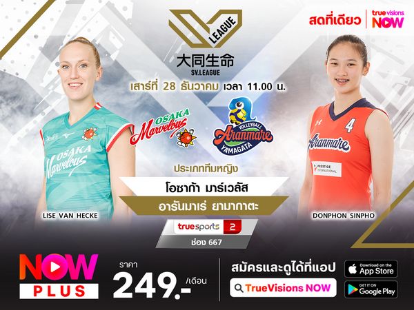 พรีวิว วอลเลย์บอลหญิง เอสวี ลีก 2024/2025 (สัปดาห์ที่ 13) คู่ระหว่าง : อารันมาเร่ ยามากาตะ พบ วิกตอรินา ฮิเมจิ วันอาทิตย์ ที่ 19 ม.ค. 68 เวลา 11.00 น. สนาม : สปอร์ต พาร์ค ยามากาตะ ยิมเนเซียม ถ่ายทอดสด : ทรูสปอร์ต 7 ช่อง 686