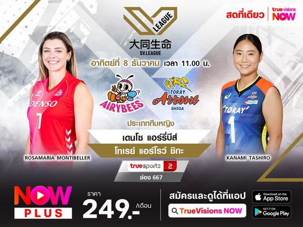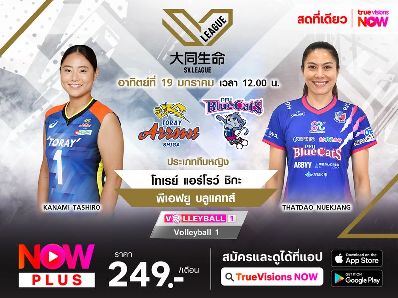 พรีวิว วอลเลย์บอลหญิง เอสวี ลีก 2024/2025 (สัปดาห์ที่ 13) คู่ระหว่าง : โทเรย์ แอร์โรว์ ชิกะ พบ พีเอฟยู บลูแคทส์ วันอาทิตย์ ที่ 19 ม.ค. 68 เวลา 12.00 น. สนาม : ชินกะ ไดฮัตสึ อารีน่า ถ่ายทอดสด : Volleyball 1