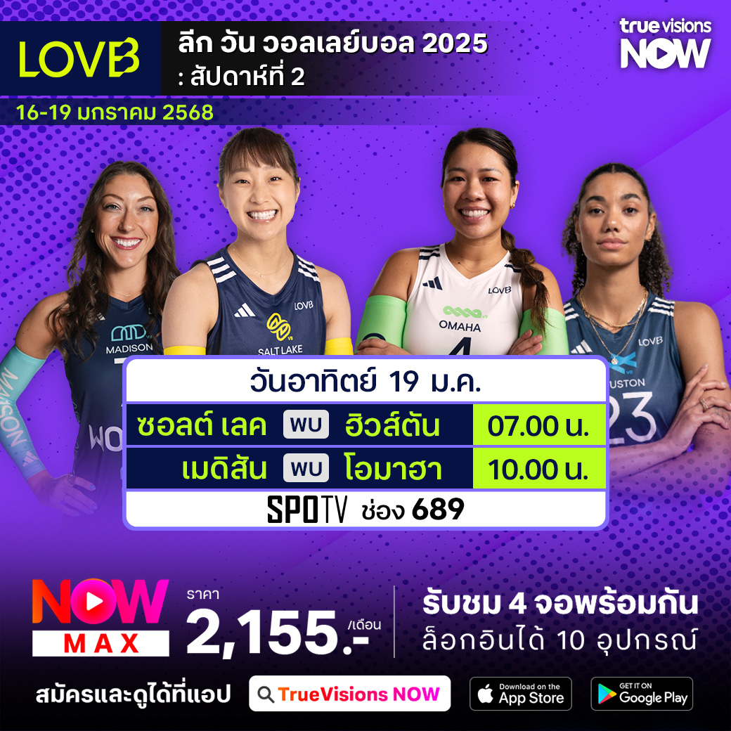 วันนี้มีอะไรดูที่ ทรูวิชั่นส์ ประจำวันอาทิตย์ที่ 19 มกราคม 68 ยังคงมีกีฬาที่น่าสนใจให้ได้ตามลุ้นตามเชียร์กันเหมือนเดิม โดยในส่วนของฟุตบอลยังมีศึกพรีเมียร์ลีก อังกฤษ, บุนเดสลีกา เยอรมนี, ลา ลีกา สเปน และไทยลีก 1, 2 ให้ได้ตามเชียร์กันต่อ ส่วนกีฬาอื่นๆ พลาดไม่ได้กับศึกเทนนิส ออสเตรเลียน โอเพ่น แกรนด์สแลมแรกของปี, กอล์ฟ พีจีเอ ทัวร์ รายการ ดิ อเมริกัน เอ็กซ์เพรสส์, กอล์ฟ ดีพี เวิลด์ ทัวร์ รายการ ฮีโร่ ดูไบ เดสเสิร์ต คลาสสิก, กอล์ฟ พีจีเอ ทัวร์ แชมเปี้ยนส์ รายการ มิตซูบิชิ อิเล็กทริก แชมเปี้ยนชิพ, แบดมินตัน บีดับเบิ้ลยูเอฟ รายการ อินเดีย โอเพ่น, เวิลด์ สนุกเกอร์ ทัวร์ รายการ จอห์นสโตนส์ เพนท์ มาสเตอร์ส, ศึกยูเอฟซี 311, วอลเลย์บอล แอลโอวีบี, วอลเลย์บอล เอสวี ลีก และ อเมริกันฟุตบอลเอ็นเอฟแอล งานนี้ ทรูวิชั่นส์ จัดเต็มให้ชมกันถึงบ้าน
