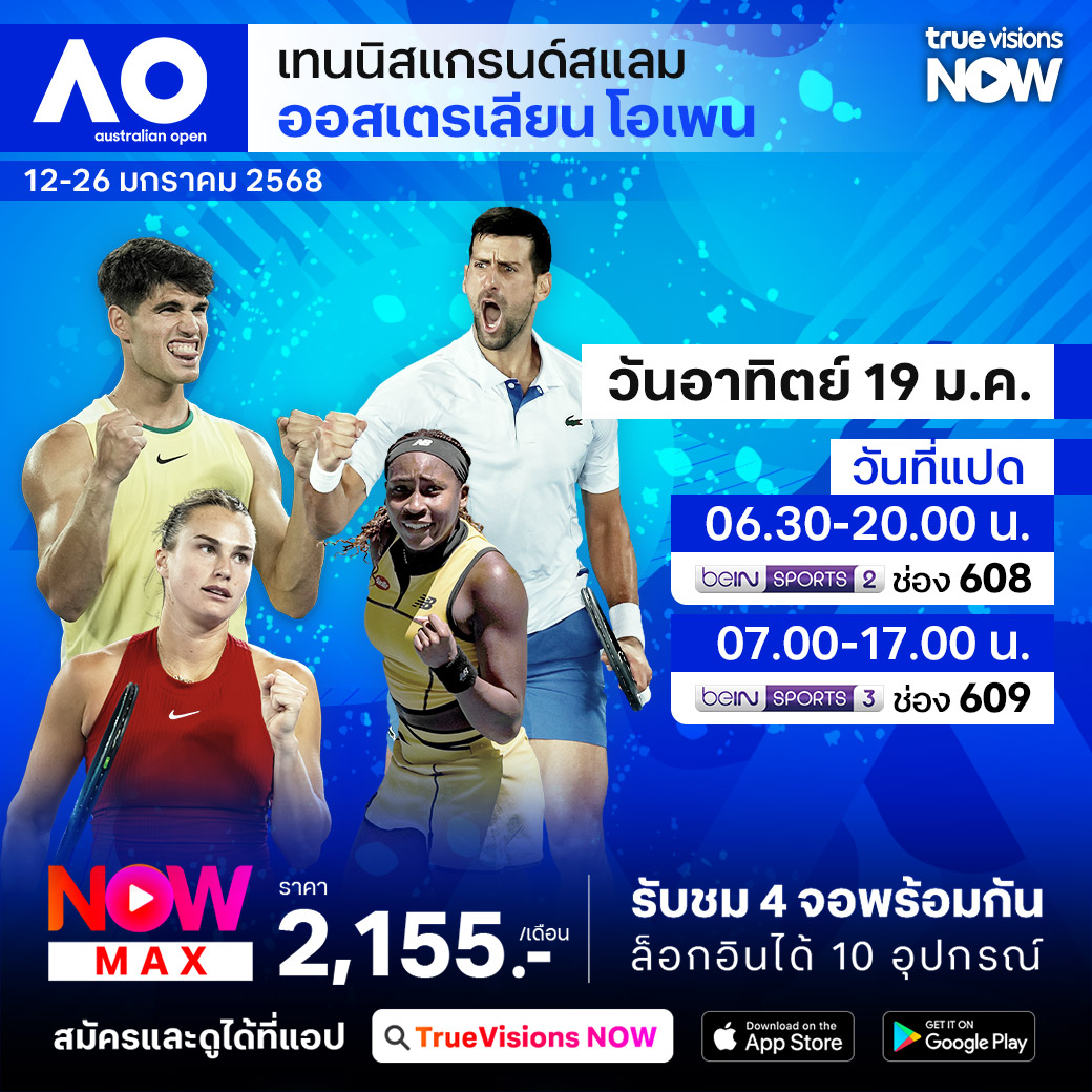 ศึกเทนนิสออสเตรเลียน โอเพ่น แกรนด์สแลมแรกของปี 2025 กลับมาอีกครั้งกับรายการแกรนด์สแลมสุดโหด ที่ผู้เล่นต้องเผชิญกับสภาพอากาศร้อนจัด ในเมืองเมลเบิร์น ประเทศออสเตรเลีย ร่วมลุ้นว่านักเทนนิสชายและหญิงคนไหน จะคว้าแชมป์แกรนด์สแลมแรกของปีไปครอง ชมสด ครบทุกรอบ ที่ ทรูวิชั่นส์