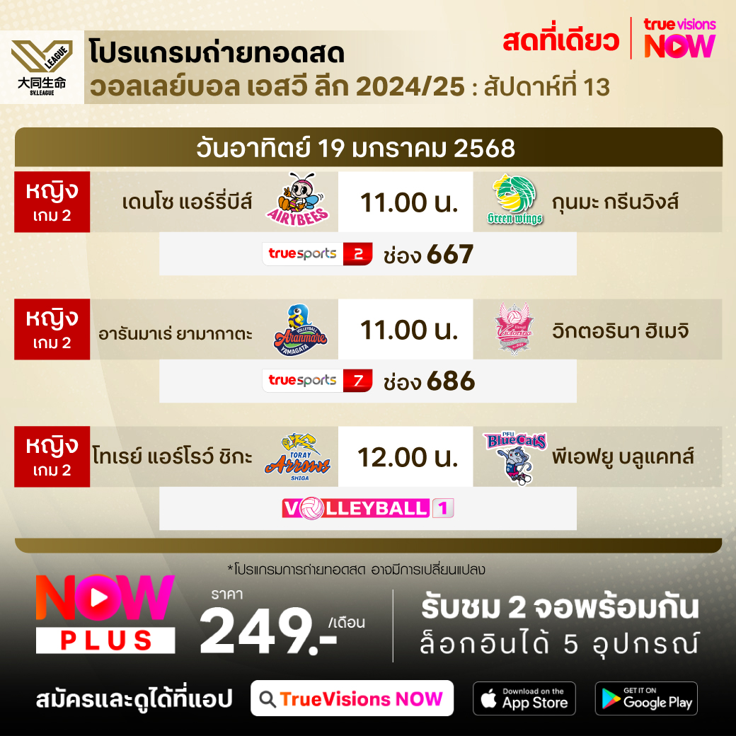 เดนโซ แอร์รี่บีส์ พบ กุนมะ กรีนวิงส์ เวลา 11.00 - 13.30 ทางช่อง TS 2 (667)