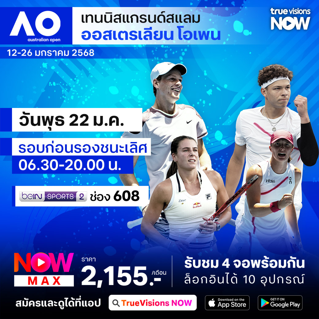 ศึกเทนนิสออสเตรเลียน โอเพ่น แกรนด์สแลมแรกของปี 2025 กลับมาอีกครั้งกับรายการแกรนด์สแลมสุดโหด ที่ผู้เล่นต้องเผชิญกับสภาพอากาศร้อนจัด ในเมืองเมลเบิร์น ประเทศออสเตรเลีย ร่วมลุ้นว่านักเทนนิสชายและหญิงคนไหน จะคว้าแชมป์แกรนด์สแลมแรกของปีไปครอง ชมสด ครบทุกรอบ ที่ ทรูวิชั่นส์