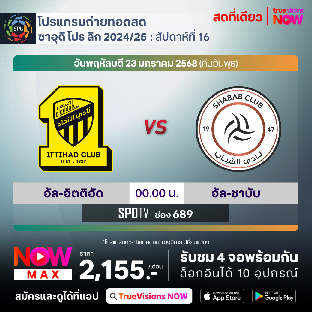 Al-Ittihad vs Al-Shabab เวลา 00.00-02.00 ทางช่อง SPOTV (689)