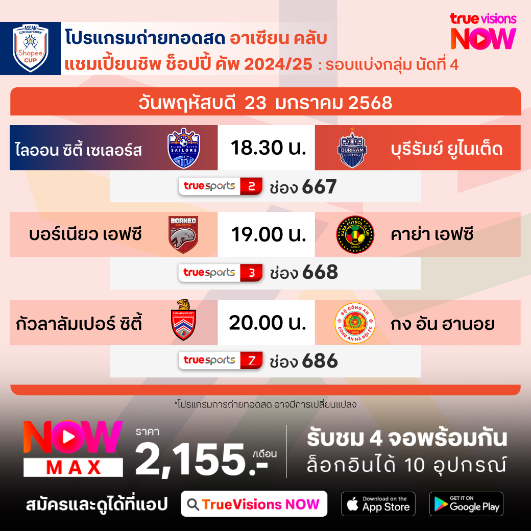 BORNEO FC vs KAYA FC เวลา 19.00-21.00 ทางช่อง TS 3 (668)