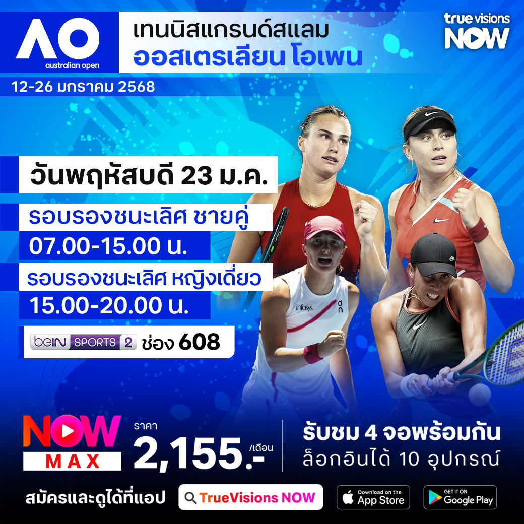 ศึกเทนนิสออสเตรเลียน โอเพ่น แกรนด์สแลมแรกของปี 2025 กลับมาอีกครั้งกับรายการแกรนด์สแลมสุดโหด ที่ผู้เล่นต้องเผชิญกับสภาพอากาศร้อนจัด ในเมืองเมลเบิร์น ประเทศออสเตรเลีย ร่วมลุ้นว่านักเทนนิสชายและหญิงคนไหน จะคว้าแชมป์แกรนด์สแลมแรกของปีไปครอง ชมสด ครบทุกรอบ ที่ ทรูวิชั่นส์