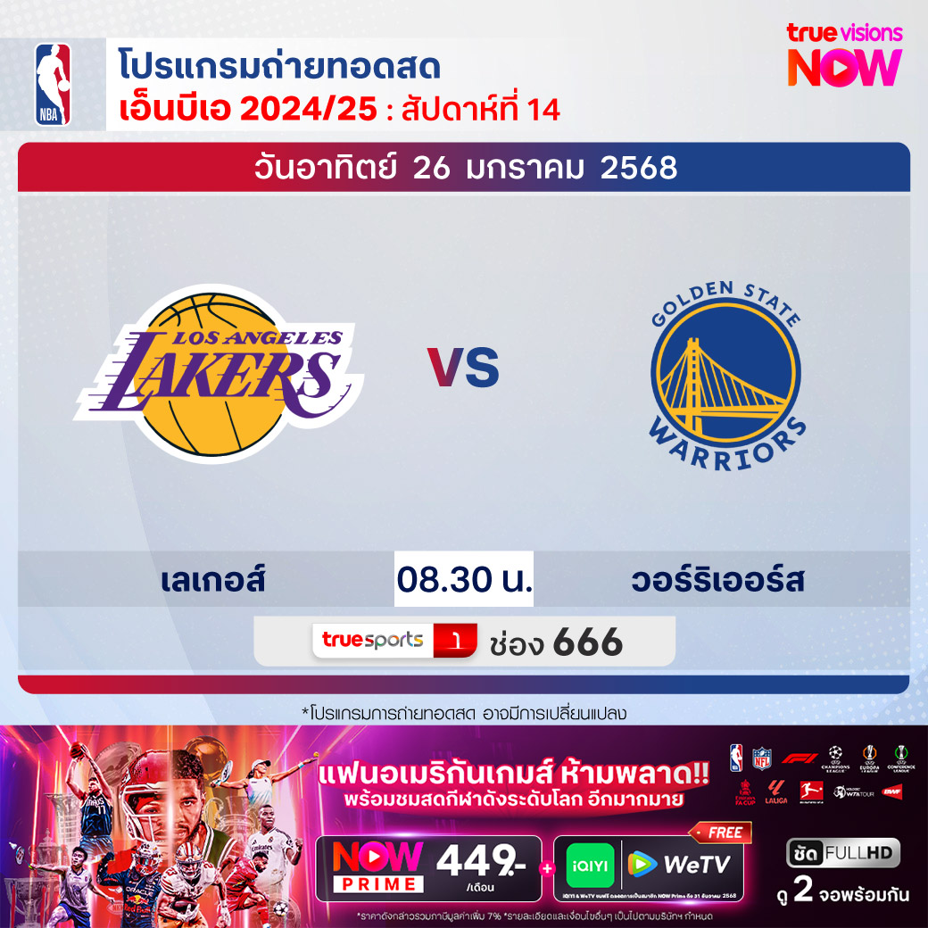 Lakers Warriors เวลา 08.30 ทางช่อง TS 1 (666)