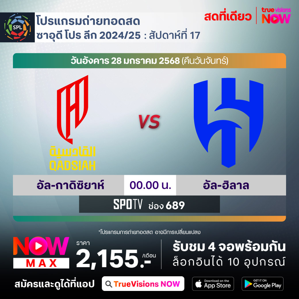 Al-Qadisiyah vs Al-Hilal เวลา 00.00-02.00 ทางช่อง SPOTV (689)