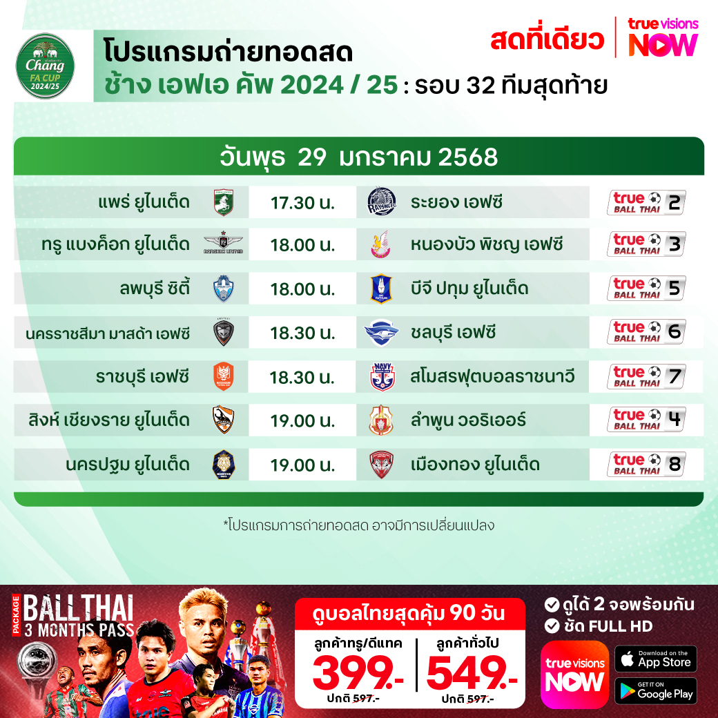 ทรู แบงค็อก ยูไนเต็ด พบ หนองบัว พิชญ เอฟซี เวลา 18.00-20.00 ทางช่อง True Ball Thai 3