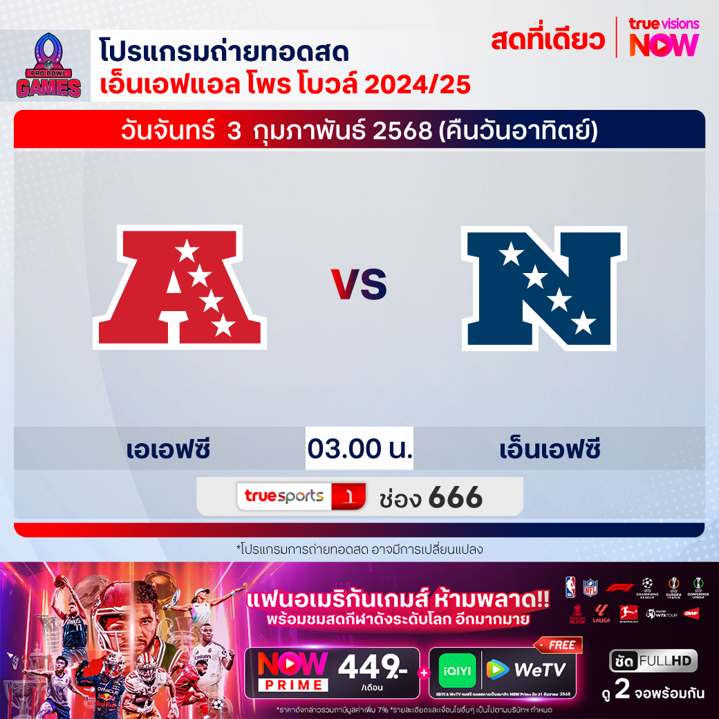 AFC Vs NFC เวลา 03.00 ทางช่อง TS 1 (666)