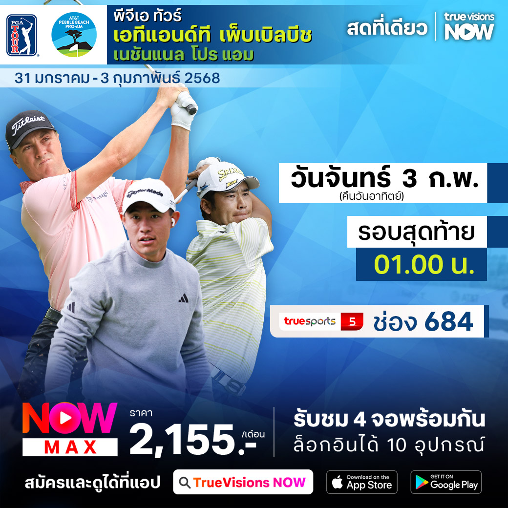แฟนๆ กีฬากอล์ฟ ต้องติดตามชมกันให้ได้ กับการมาถึง ของ พีจีเอ ทัวร์ รายการสำคัญ ระดับ ซิกเนเจอร์ อีเว้นท์ กับรายการ เอทีแอนด์ที เพ็บเบิ้ลบีช โปร-แอม ที่ เพ็บเบิ้ล บีช แคลิฟอร์เนีย ที่คัดเอาโปรกอล์ฟซูเปอร์สตาร์มือระดับท็อปมาแข่งขันโดยไม่มีการตัดตัวตกรอบ กับเงินรางวัลรวมมหาศาล 20 ล้านเหรียญสหรัฐฯ ร่วมลุ้นกันว่าแชมป์ปีนี้จะเป็นใคร ชมสด เอ็กซ์คลูซีฟ ที่เดียวที่ ทรูวิชั่นส์