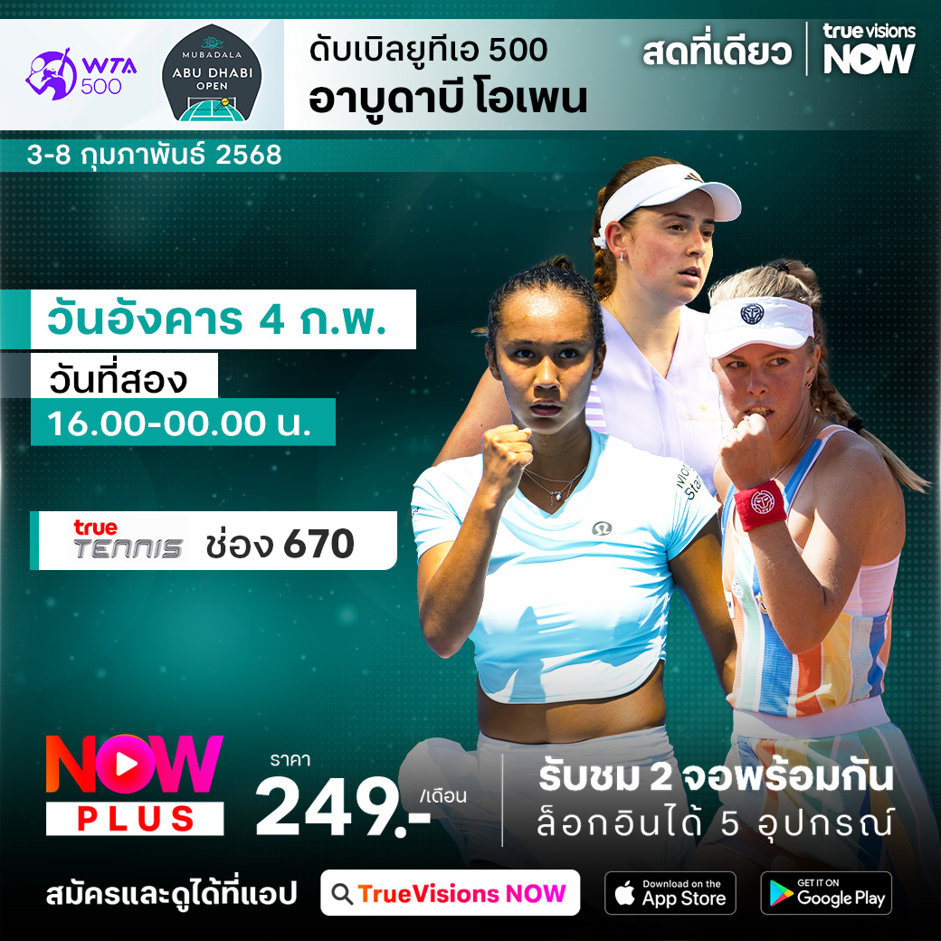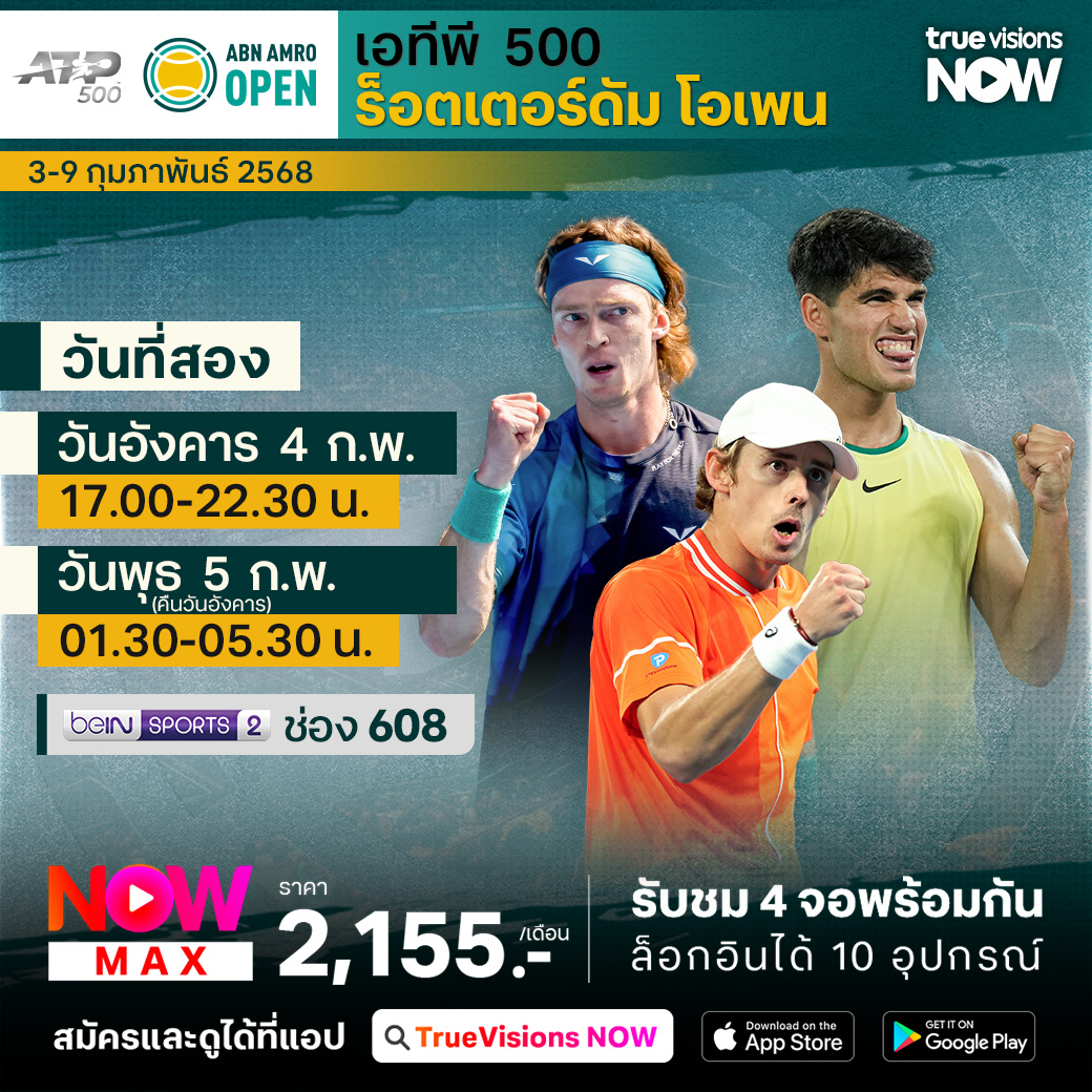 วันนี้มีอะไรดูที่ ทรูวิชั่นส์ ประจำวันอังคารที่ 4 กุมภาพันธ์ 68 ยังคงมีกีฬาที่น่าสนใจให้ได้ตามลุ้นตามเชียร์กันเหมือนเดิม โดยในส่วนของเทนนิสยังมีศึก เอทีพี ทัวร์ รายการ ร็อตเตอร์ดัม โอเพ่น และ ดับเบิ้ลยูทีเอ ทัวร์ รายการ อาบูดาบี โอเพ่น งานนี้ ทรูวิชั่นส์ จัดเต็มให้ชมกันถึงบ้าน