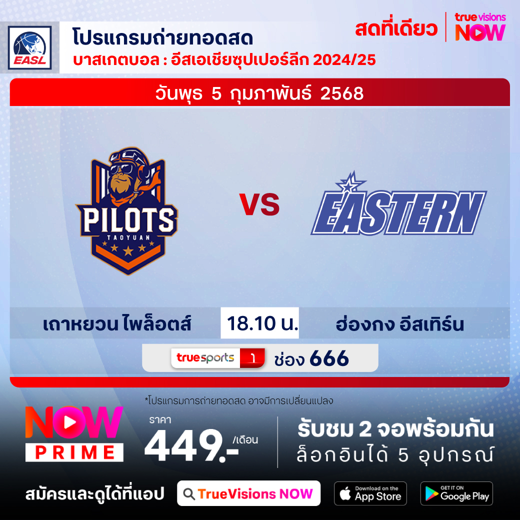 Taoyuan Pauian Pilots Hong Kong Eastern เวลา 18.10 ทางช่อง TS 1 (666)
