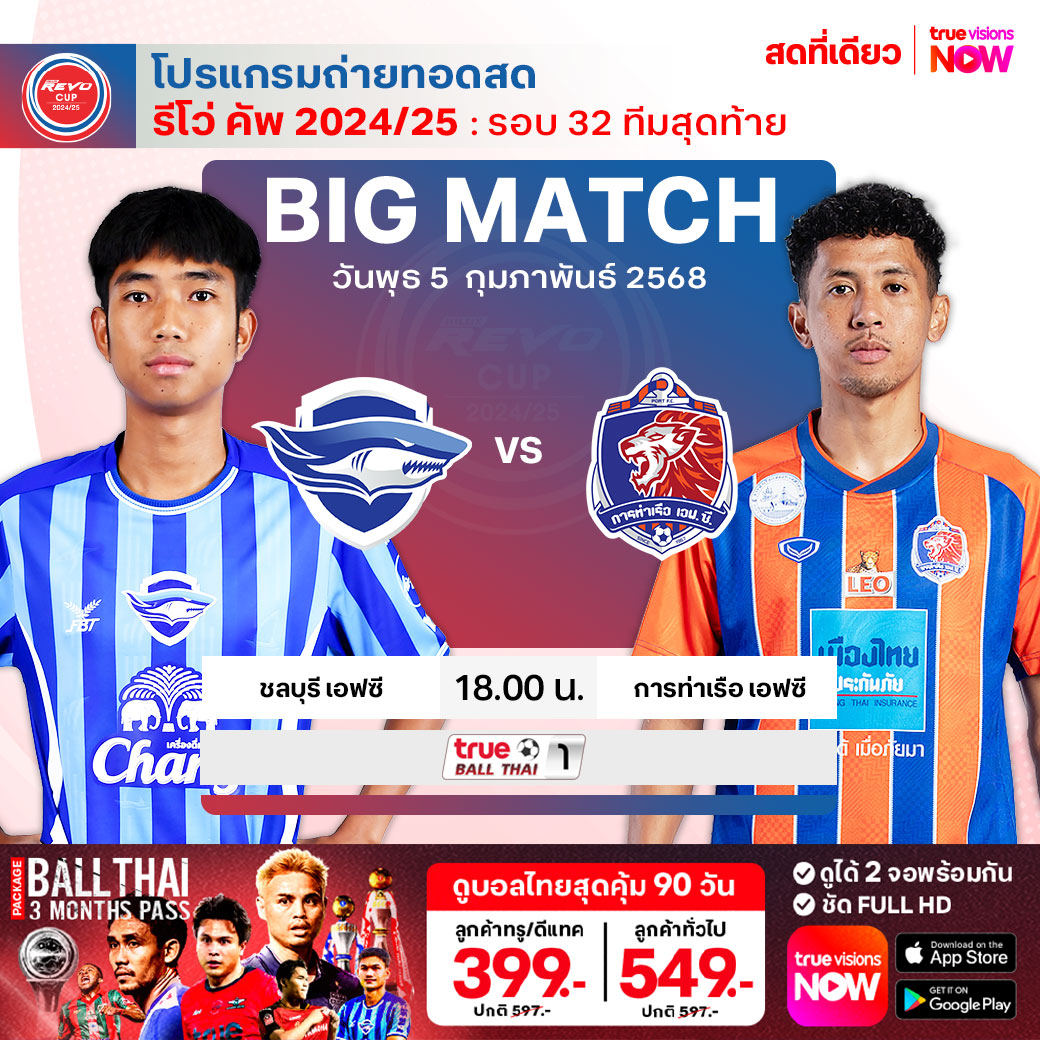ชลบุรี เอฟซี พบ การท่าเรือ เอฟซี เวลา 18.00-20.00 ทางช่อง True Ball Thai 1