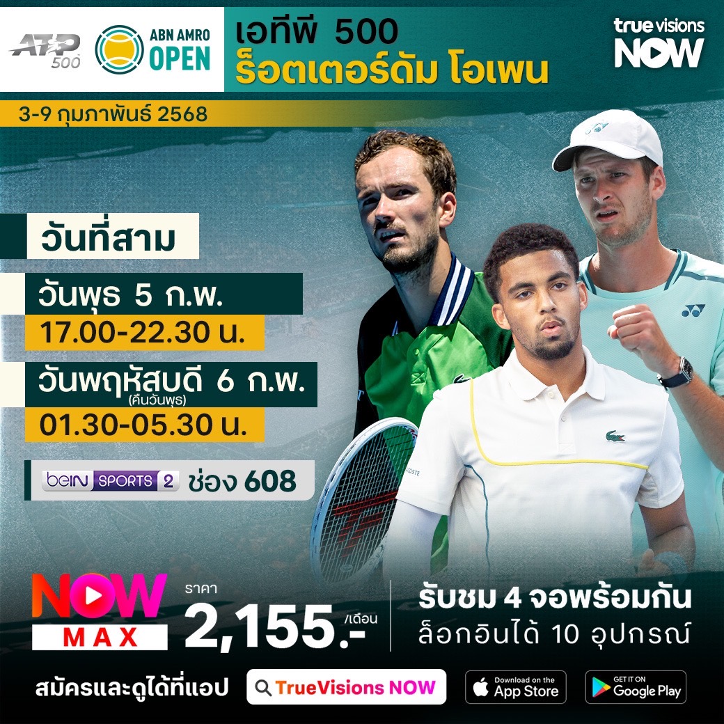 เทนนิสชาย เอทีพี ทัวร์ สัปดาห์นี้กลับไปแข่งขันบนทวีปยุโรปอีกครั้ง กับรายการ ร็อตเตอร์ดัม โอเพ่น ที่เมืองร็อตเตอร์ดัม ประเทศเนเธอร์แลนด์ รายการนี้ถือว่าเป็นรายการฮาร์ทคอร์ทในร่มที่เก่าแก่อีกหนึ่งรายการ และปีนี้ก็มีนักเทนนิสระดับโลกเข้าร่วมการแข่งขันอย่างคับคั่งเช่นเดิม ร่วมลุ้นกันว่าใครจะคว้าแชมป์ไปครอง ชมสด ครบทุกรอบ ที่ ทรูวิชั่นส์