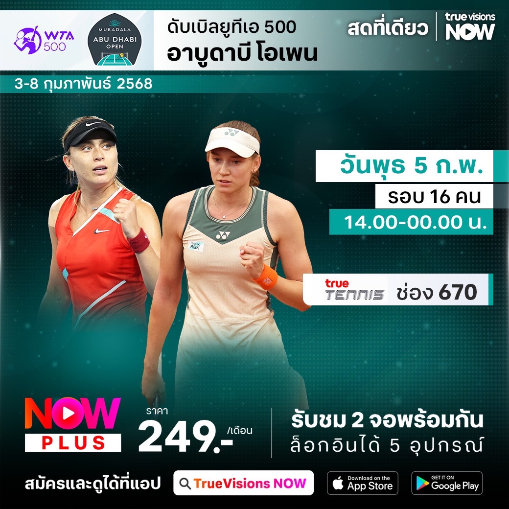 รอบ 16 คน เวลา 14.00 - 00.00 ทางช่อง True Tennis (670)