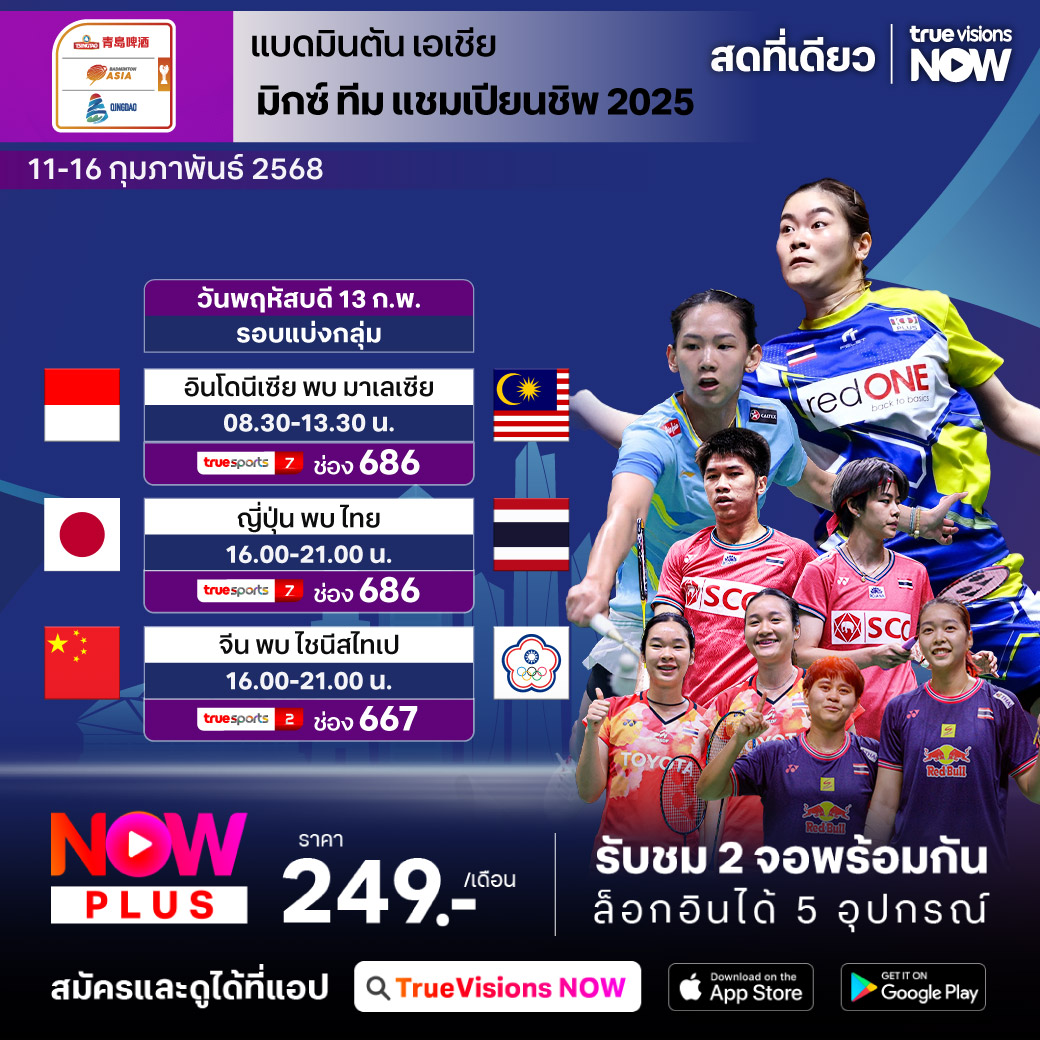 พักรบเรื่องเก็บคะแนนสะสมโลกและมาเอาใจช่วยทีมชาติ กับศึกแห่งศักดิ์ศรีระดับชิงแชมป์ทวีป สัปดาห์นี้ แฟนๆ กีฬาแบดมินตันจะได้สัมผัสบรรยากาศของความสนุกตื่นเต้น ในรูปแบบของทีมผสมชิงแชมป์เอเชีย หรือ เอเชีย มิกซ์ ทีม แชมเปี้ยนชิพ 2025 ที่เมืองชิงเต่า ประเทศจีน ร่วมส่งใจเชียร์ทีมชาติไทย สู้สุดใจเพื่อคว้าชัยเหนือคู่แข่งระดับโลกของเอเชีย ชมสด จุใจ เอ็กซ์คลูซีฟ ที่เดียวที่ ทรูวิชั่นส์